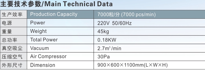 生產效率:膠囊0~42萬粒/小時;藥片0~18萬片/小時,變頻調速